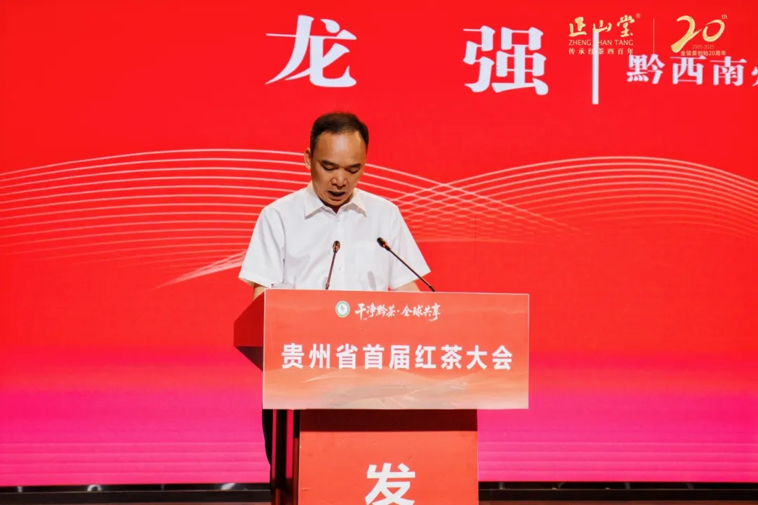 福建正山堂茶业有限责任公司董事长江志东在发言中回顾了与普安红的合作历程。他提到,自2016年结缘以来,双方携手将“正山堂·普安红”从无到有、从小到大,逐步构建起标准化、品牌化的发展路径。他强调,将以文化为媒、以品质为基、以品牌为翼,努力将“普安红”打造成中国红茶的代表性品牌。