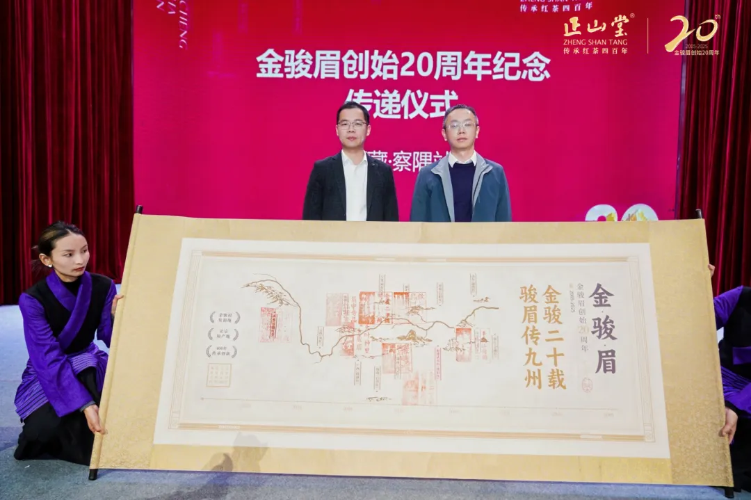 至此,金骏眉创始20周年纪念传递仪式传至西藏察隅站,察隅县委常务副书记、政府常务副县长黄志波、福建正山堂茶业有限责任公司总经理张赛林共同登台盖下印章,象征着金骏眉的创新精神与察隅的雪域红香在此交汇融合。这一刻,不仅是品牌情怀的延续,更是对察隅红茶未来发展的期许——以茶为纽带,凝聚民族力量、稳固边疆根基、释放产业优势。