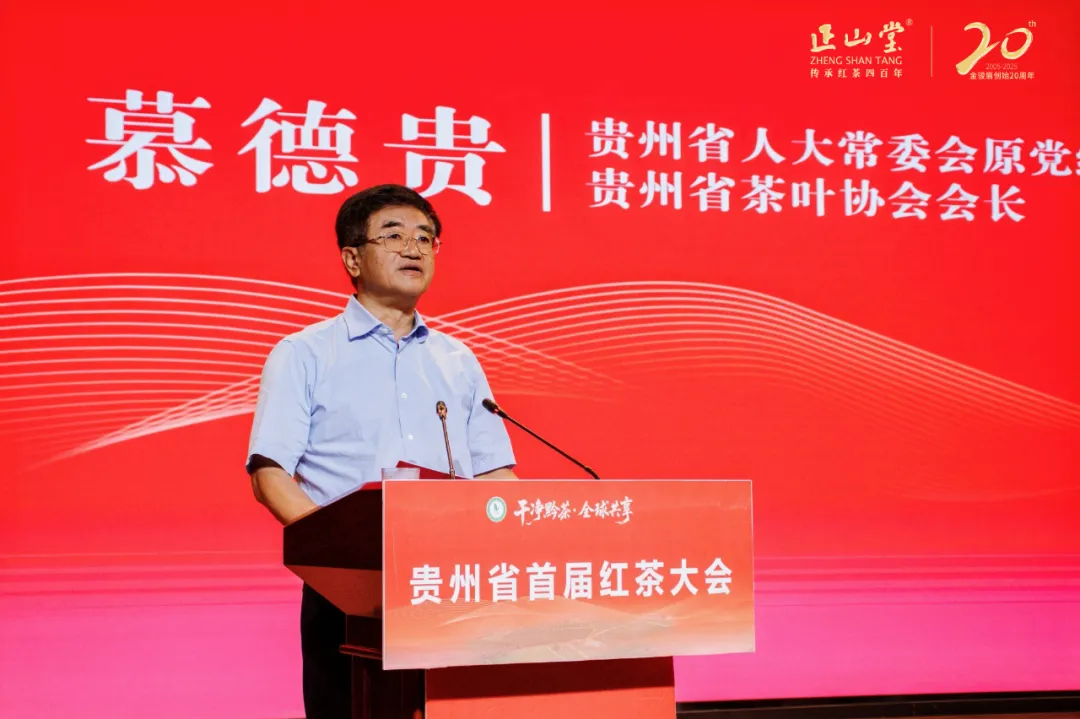 贵州省人大常委会原党组书记、副主任,贵州省茶叶协会会长慕德贵在大会上表示,希望以此次大会为新起点,凝心聚力、携手同行,将“贵州红茶”打造成为一张靓丽名片,让贵州红茶香飘四海。