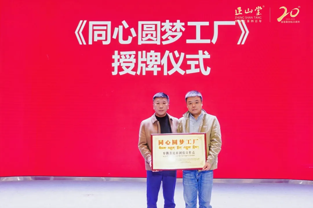 随后举行“同心圆梦工厂”授牌仪式,察隅县委常委、统战部部长肖健登台,为西藏察隅正山堂茶业有限公司授牌。这不仅是对察隅茶产业在促进民族团结中所作贡献的认可,更寄托了汉藏同胞携手前行、共创美好的共同愿景。未来,这里将成为展示边疆发展成果、传递民族团结心声的重要窗口。